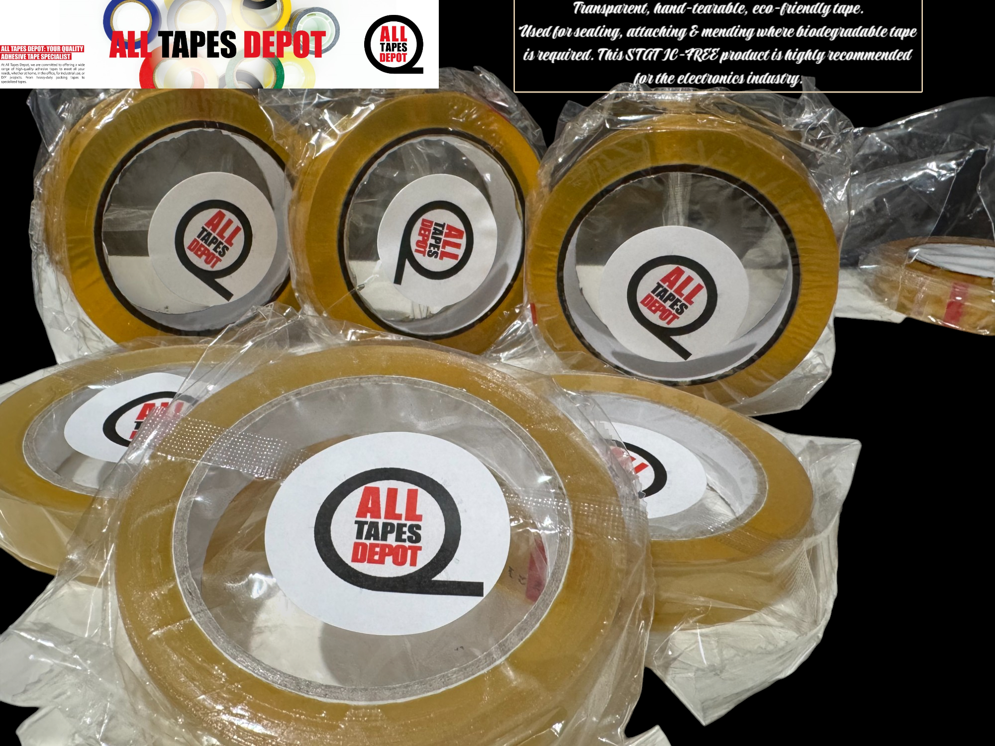 Highly recommended for the electronics industry, this tape is ideal for sealing, mending, and attaching lightweight materials where eco-conscious and static-sensitive handling is critical. Its static-free properties help reduce electrostatic discharge risks during use.